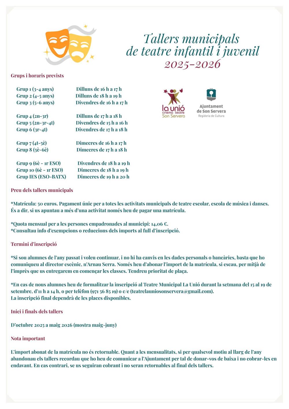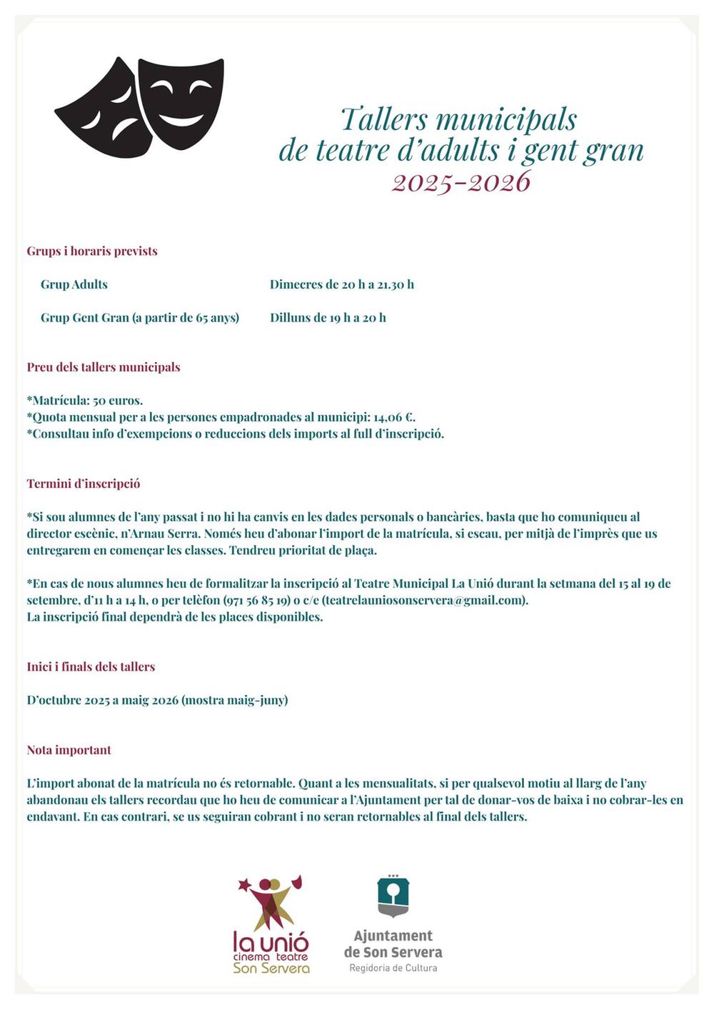 Tallers de teatre infantil. juvenil, adults i gent gran.